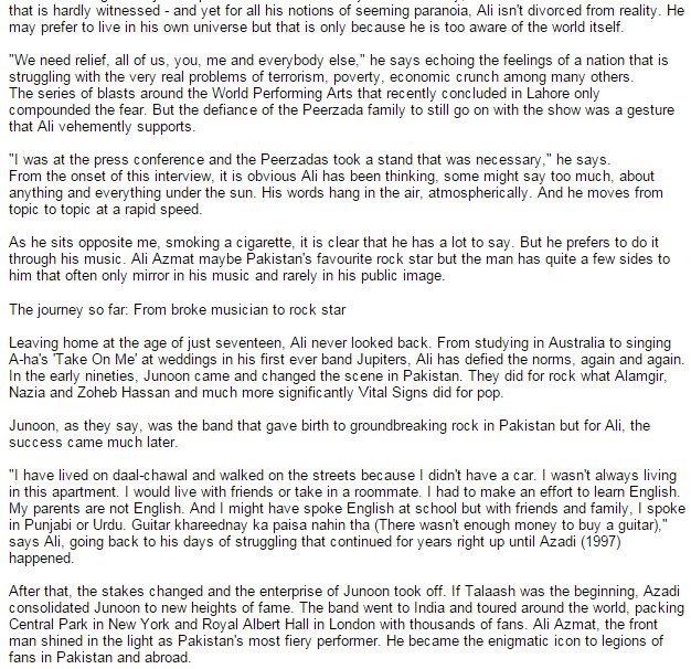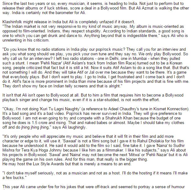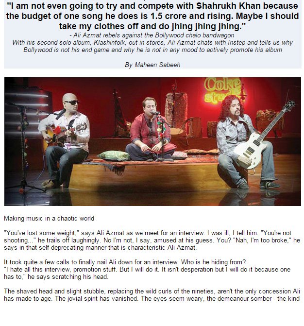 Ali Azmat rebels against the Bollywood By Maheen Sabeeh 07 December 2008